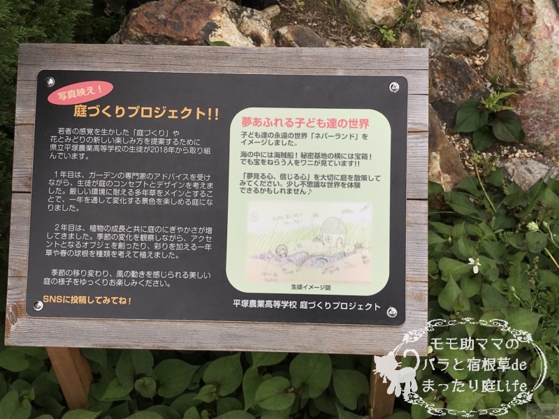 こちらは平塚農業高等学校の生徒さんがコンセプトとデザインを考えた、庭づくりプロジェクトのお庭だそうです